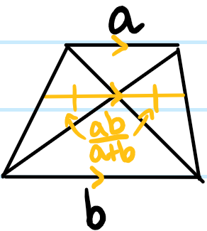 Problem: Prove that the diagonals of any trapezoid intersect at the harmonic mean of the \(2\) parallel sides of the trapezoid: