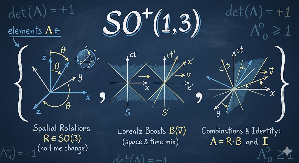 Finally, as a terminology note, Lorentz scalars are synonymous with Lorentz invariant quantities, while all other objects transforming under some non-trivial irrep of \(SO^+(1,3)\) are collectively grouped under the umbrella of Lorentz covariant quantities (this is not to be confused with an obsolete use of the word “covariant” in “covariant vectors” to distinguish them from “contravariant vectors”; in modern terminology, one should simply refer to them as covectors and tangent vectors respectively).